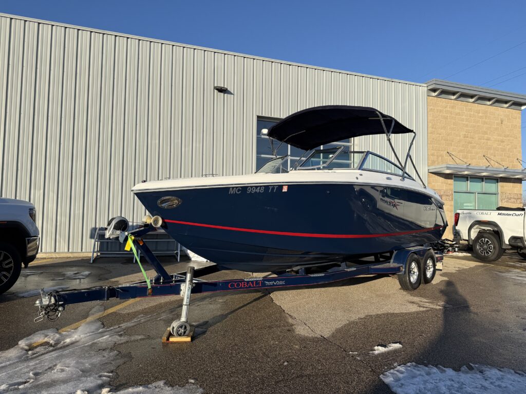 2015 Cobalt R5, Volvo 380 DP 6.0L, 190 hours, Navy with red boot stripe, Exterior and Interior is in great condition, includes tandem axle phoenix trailer.