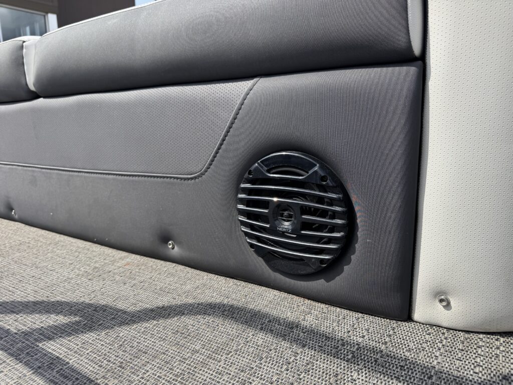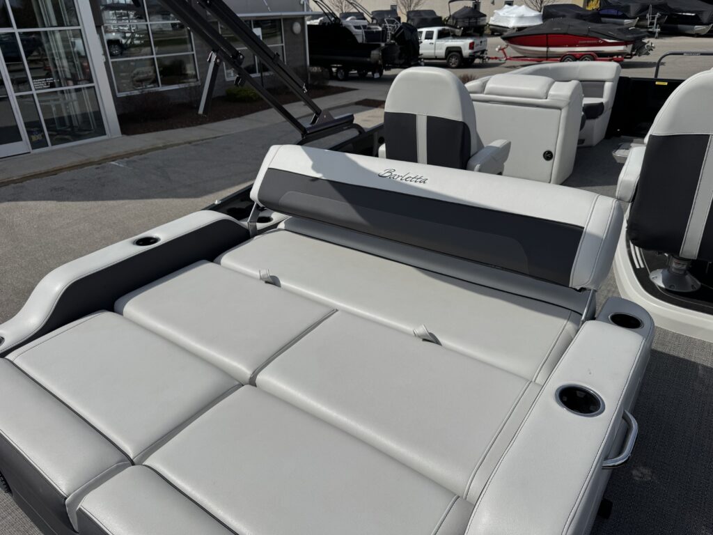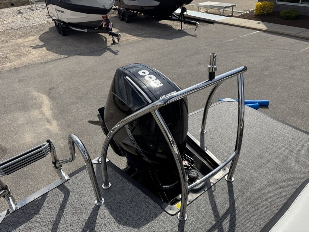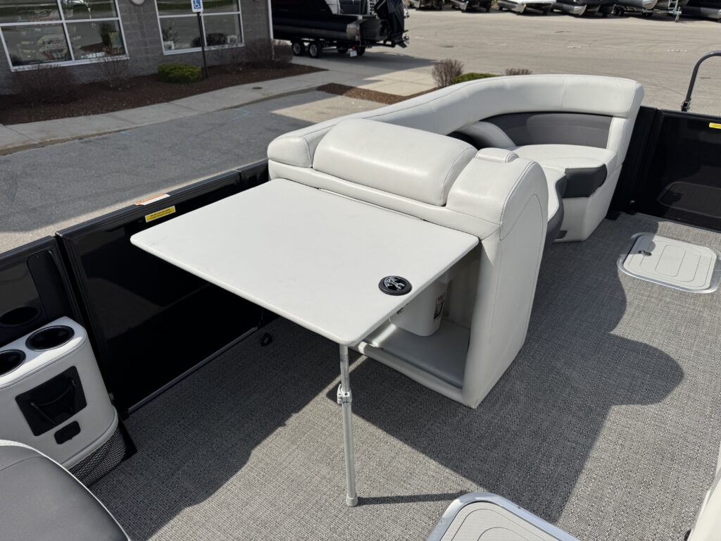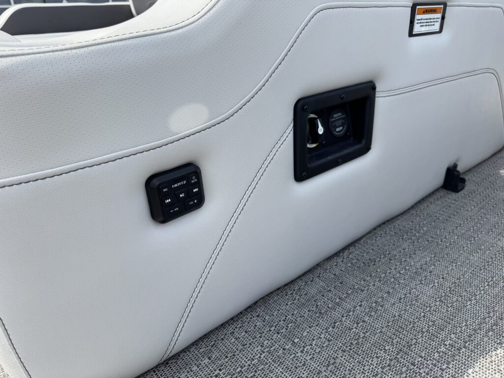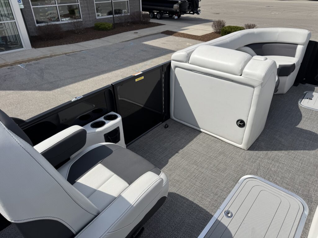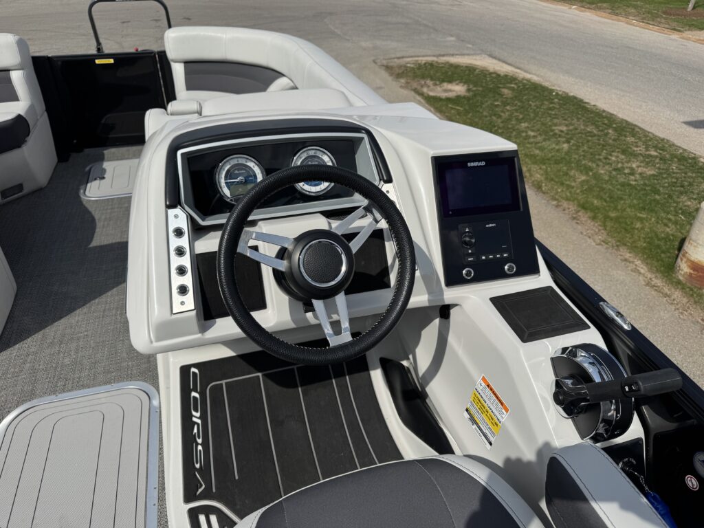 U-Flex EZ Steer Mechanical Steering, Bimini Dome Light, Front Bimini Top Struts, Power Bimini Top w/ Boot, Snapless Playpen Cover, 10 Year Bow-To-Stern Warranty, 20" Transom, 26" Diameter Pontoon Tubes, 7-Ply 3/4" Marine Decking, Dual Battery Trays with Switch, Extended Activity/Swim Deck, Full Length Exterior Wave Tamers (Outside Tubes), Full Length Solid Keel, Full Length Underbelly Skin, Hybrid Crossmember Configuration - Combination Box/I-Beam and C-Channel, Limited Lifetime Structural Warranty, Premium Exterior Top-Rail Extrusion, Reinforcement In Stern Tubes for Additional Support, Sealed Automotive-Style Deutsch Electrical Connectors, Stainless Steel Flip-Up Cleats, Tube Skirting, V.I.P. Technology (Vibration Isolation Pad), Exterior Rail Fender Hangers, LED Docking Lights, Stainless Steel Starboard Stern Ladder, E-Z Access Integrated Waste Basket, Stow-Away Table and Storage in Port Chaise, Ultra-Lounge - Multi-Position Stern Lounge with USB Ports & Yeti-Ready Cupholders, Underseat Storage Vents, NEW Improved Enhanced Display Hertz Marine Stereo with 6 Speakers, Tube-Tow Watersports Cage, USB Charging Ports, Yeti-Ready Cupholders Throughout, Fire Extinguisher, Highback, Reclining, Helm Seat with Swivel and Slide, Hook 4 Fishfinder/Chartplotter, Integrated Lockable Glove Box, Integrated Pet Food/Water Dishes, Integrated Underhelm Storage Pocket, Premium Steering Wheel, Wireless Phone Charger, Railskin Packages: Clear (Silver) Anodized Aluminum Rails+ View more