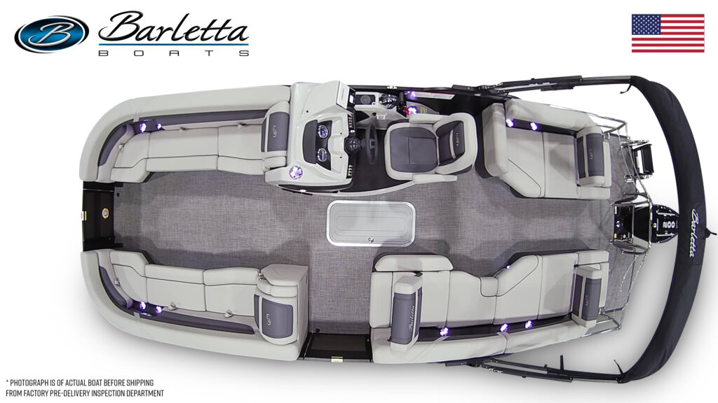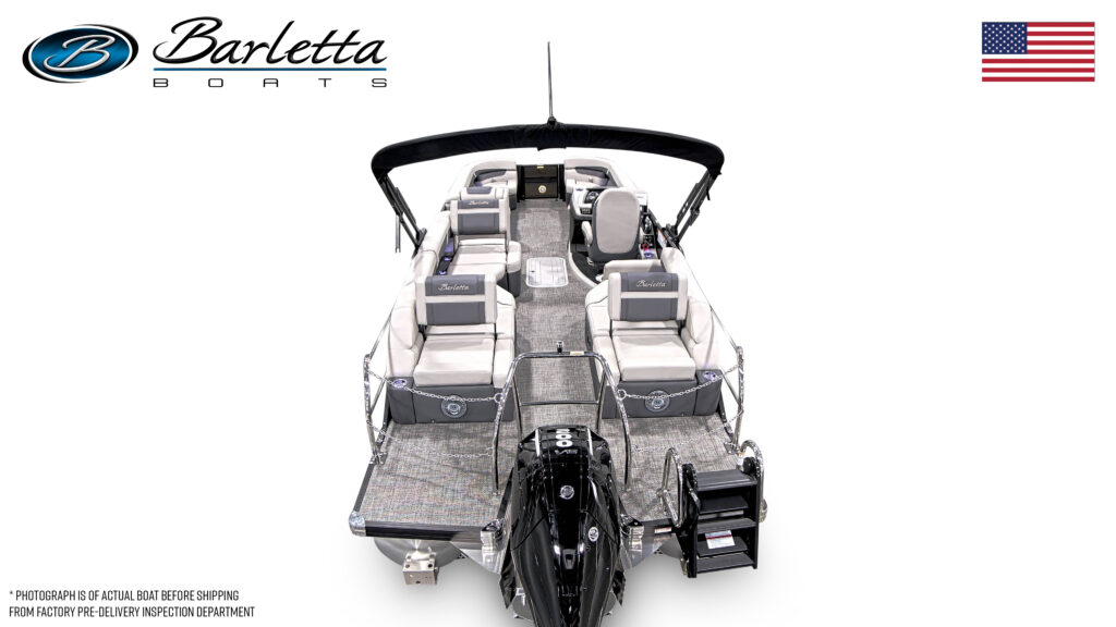 Railskin Packages - Clear (Silver) Anodized Aluminum Rails, U-Flex EZ Steer Mechanical Steering, Bimini Dome Light, Front Bimini Top Struts, Power Bimini Top w/ Boot, Snapless Playpen Cover, 10 Year Bow-To-Stern Warranty, 20" Transom, 25" Diameter Pontoon Tubes, 3/4" Marine Decking, Battery Shutoff Switch, Dual Battery Trays with Switch, Extended Activity/Swim Deck, Full-Length Single Stage Lifting Strakes with Invasive Species Flush (Bi-Toon), Hybrid Crossmember Configuration - Combination I-Beam and C-Channel, Internally Reinforced Nose Cone, Lillipad Ghost Mounts, Limited Lifetime Structural Warranty, Premium Exterior Top-Rail Extrusion, Sealed Automotive-Style Deutsch Electrical Connectors, Stainless Steel Flip-Up Cleats, Underbelly Skin - Partial for 2-Tube, V.I.P. Technology (Vibration Isolation Pad), Bow & Port Gate with Doggie-Dock View See-Through Acrylic, Four (4) Stainless Steel Quick Release Fender Clips, LED Docking Lights, Stainless Steel Accessory Mounts (Installed Opposite Side of Ladder), Stainless Steel Safety Stanchions w/ Chains, Stair Step Pet Friendly Stern Boarding Ladder w/Stainless Steel Handles, E-Z Access Integrated Waste Basket, Integrated Arm Rests in Bow Furniture, Stow-Away Table and Storage in Port Chaise, Ultra-Lounge - Multi-Position Stern Lounge with USB Ports & Yeti-Ready Cupholders, NEW JBL Marine Stereo with 6 Speakers (Zone Control), Tube-Tow Watersports Cage, USB Charging Ports, Yeti-Ready Stainless Steel Cupholders Throughout, Fire Extinguisher, Highback, Reclining, Helm Seat with Swivel and Slide, Hook 5 GPS, Integrated Cell Phone Storage with Wireless Charging Station and AUX, Integrated Lockable Glove Box, Integrated Pet Food/Water Dishes, Raised Helm Platform w/Marine Mat and "Yeti-Ready" Cupholder(s), Steering Wheel+ View more