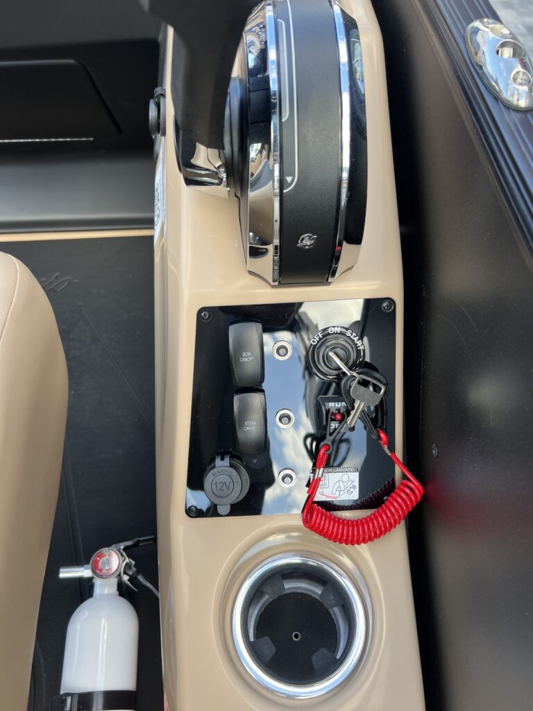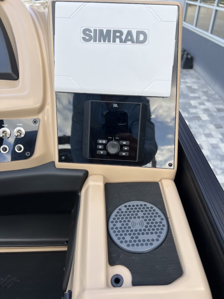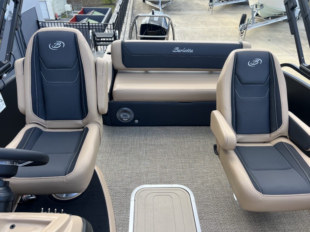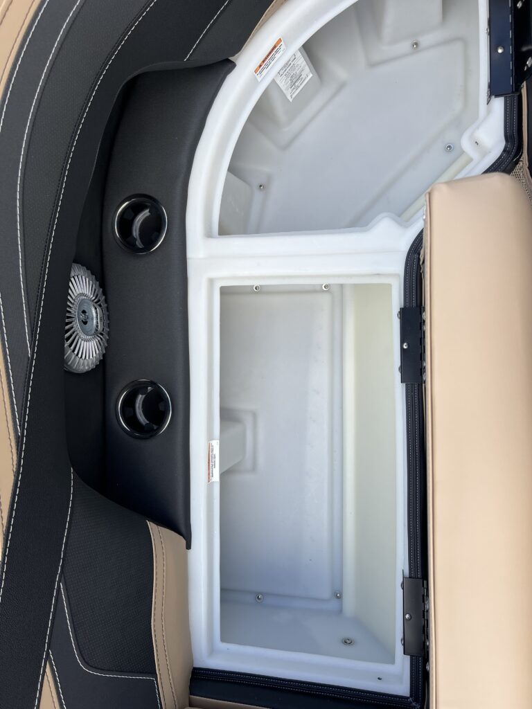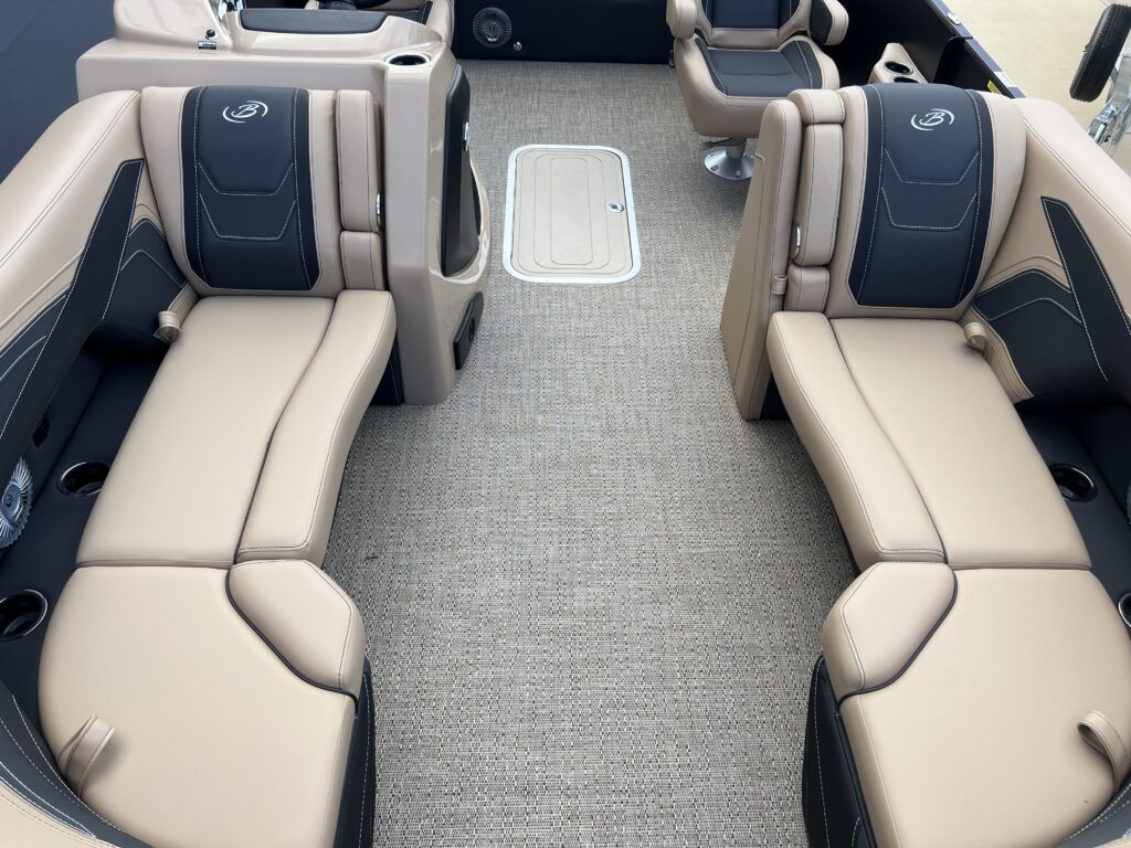 Clear (Silver) Anodized Aluminum Rails, U-Flex EZ Steer Mechanical Steering, Bimini Dome Light, Front Bimini Top Struts, Power Bimini Top w/ Boot, Redesigned PlayPen Cover. No clips, no poles!, 10 Year Bow-To-Stern Warranty, 20" Transom, 25" Diameter Pontoon Tubes, 3/4" Marine Decking, Battery Shutoff Switch, Dual Battery Trays with Switch, Extended Activity/Swim Deck, Full-Length Single Stage Lifting Strakes with Invasive Species Flush (Bi-Toon), Hybrid Crossmember Configuration - Combination I-Beam and C-Channel, Internally Reinforced Nose Cone, Lillipad Ghost Mounts, Limited Lifetime Structural Warranty, Premium Exterior Top-Rail Extrusion, Sealed Automotive-Style Deutsch Electrical Connectors, Stainless Steel Pop Up Cleats, Underbelly Skin - Partial for 2-Tube, V.I.P. Technology (Vibration Isolation Pad), Bow & Port Gate with Doggie-Dock View See-Through Acrylic, Four (4) Stainless Steel Quick Release Fender Clips, Ladder Warning Light, LED Docking Lights, Stainless Steel Accessory Mounts (Installed Opposite Side of Ladder), Stair Step Pet Friendly Stern Boarding Ladder w/Stainless Steel Handles, E-Z Access Integrated Waste Basket, Integrated Arm Rests in Bow Furniture, Integrated Pet Food/Water Dishes, Stow-Away Table and Storage in Port Chaise, Ultra-Lounge - Multi-Position Stern Lounge with USB Ports & Yeti-Ready Cupholders, JBL Marine Stereo with 6 Speakers (No Zone Control), Tube-Tow Watersports Cage, USB Charging Ports, Yeti-Ready Stainless Steel Cupholders Throughout, Dimmable Gages, Eagle 5 GPS, Fire Extinguisher, Highback, Reclining, Helm Seat with Swivel and Slide, Integrated Cell Phone Storage with Wireless Charging Station and AUX, Integrated Lockable Glove Box, Raised Helm Platform w/Marine Mat and "Yeti-Ready" Cupholder(s), Steering Wheel+ View more