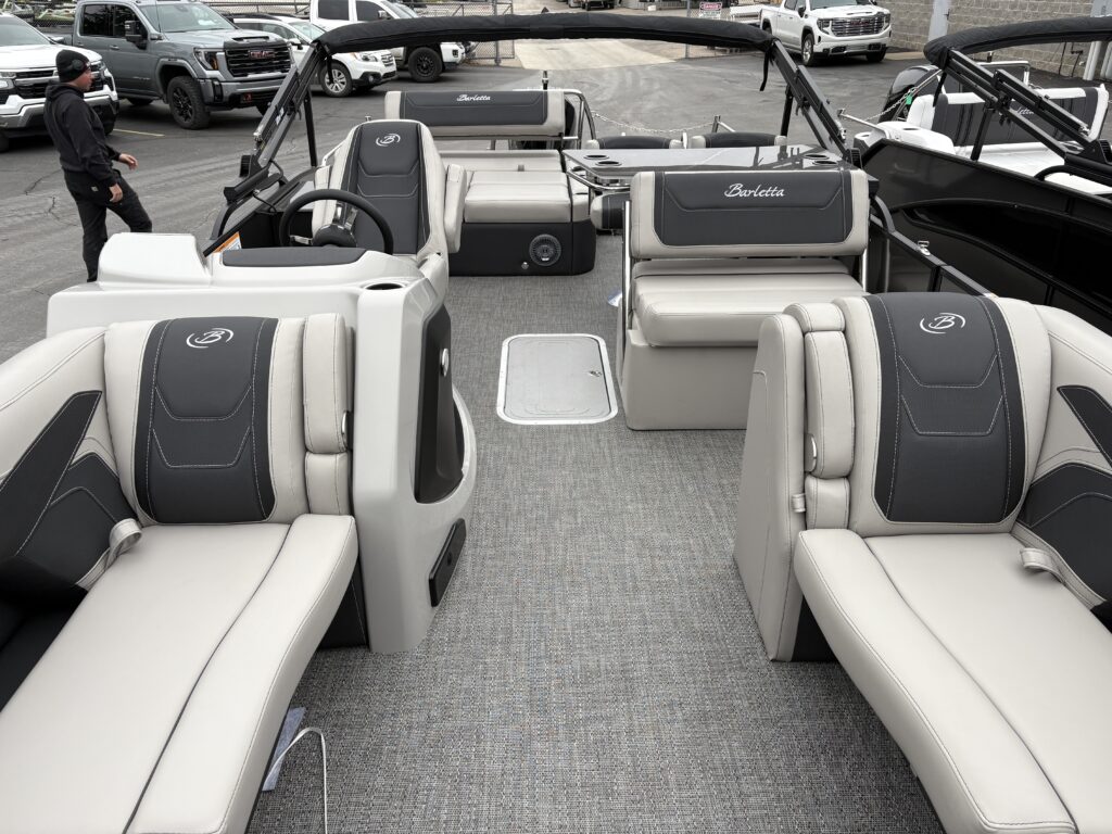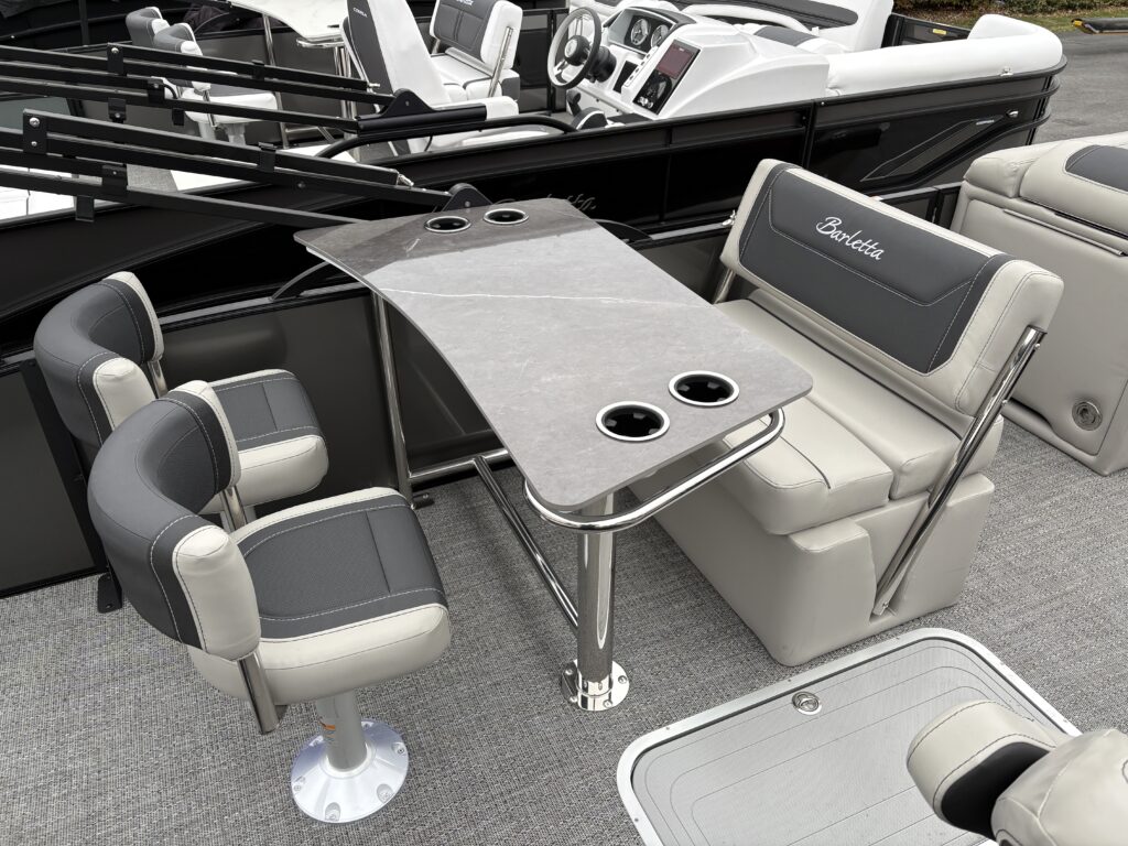 Barletta pontoons are built for those who value quality, comfort, and reliability. The 2026 Cabrio 24UE features an Ultra-Entertainer layout designed for socializing and relaxation, with a spacious deck, wraparound seating, and a built-in entertainment station. Built with Barletta’s smooth, quiet ride technology and premium materials, this model delivers luxury performance for families who want both comfort and style.